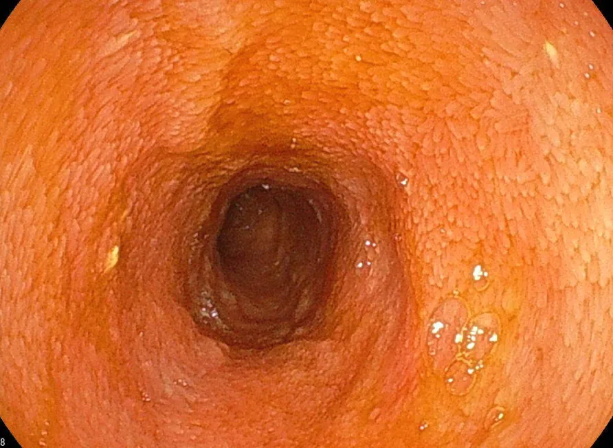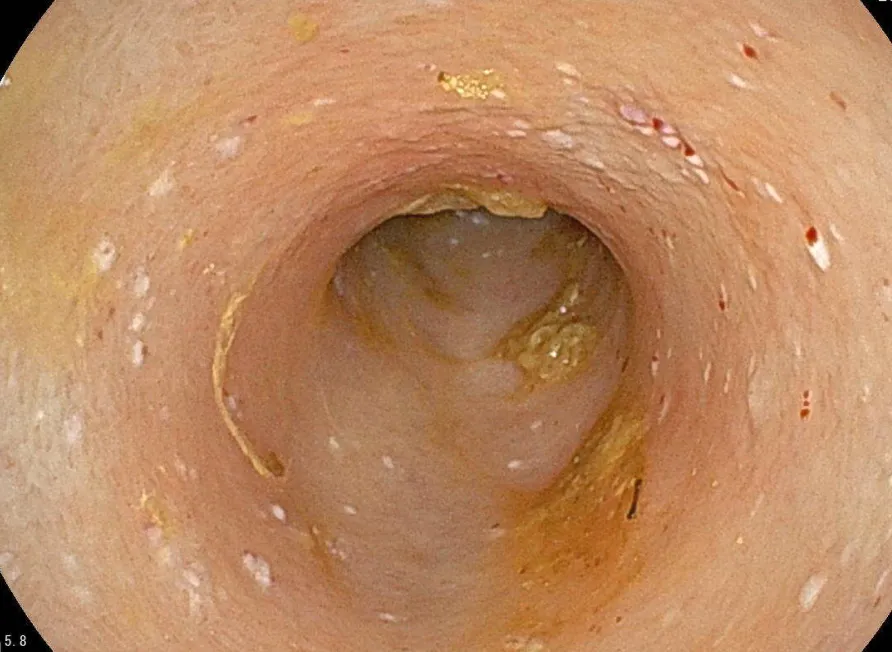 ご家族は確定診断のための内視鏡検査を希望されました。内視鏡検査では小腸は全体的にやや浮腫が見られます。