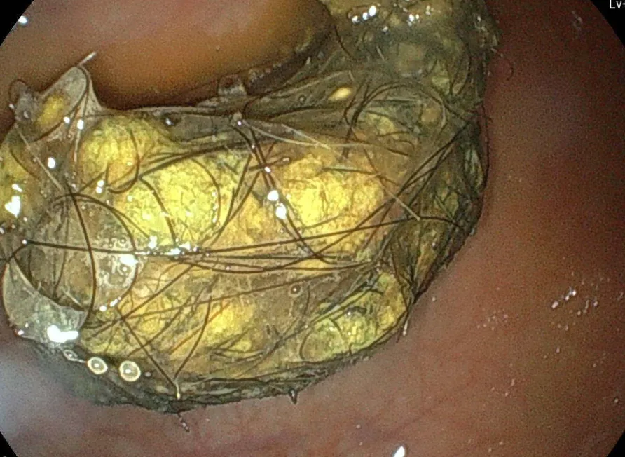 偶発的に胃内異物がみつかり内視鏡を用いて摘出しました。内視鏡生検の病理結果で「中程度の慢性胃腸炎と軽度のリンパ管拡張症」と診断されました。